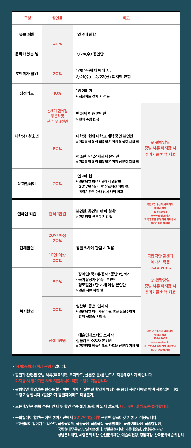 국립극단 콜센터, 홈페이지 예매 시 적용