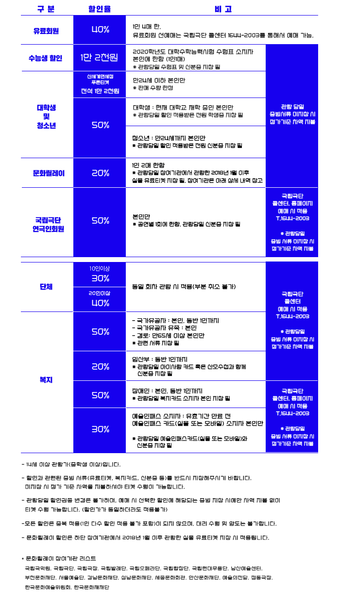 국립극단 콜센터, 홈페이지 예매 시 적용 T.1644-2003