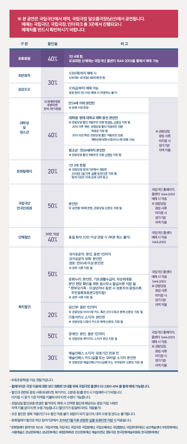 국립극단 콜센터 1644-2003 예매 시 적용 |