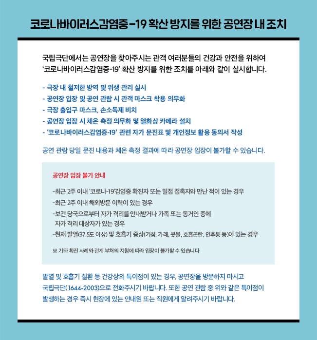 국립극단 콜센터 1644-2003 예매 시 적용