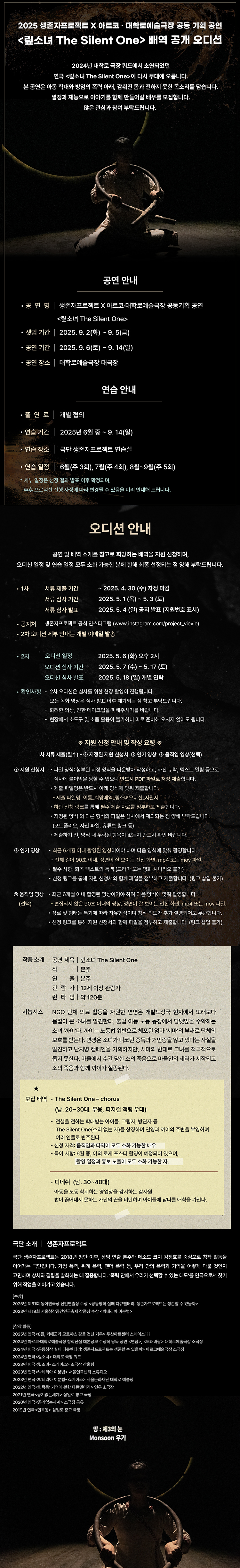 - 2025 극단 생존자프로젝트 레퍼토리 공연 <맆소녀 The Silent One> 배우 모집 및 공연 안내