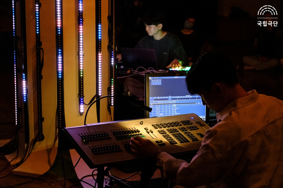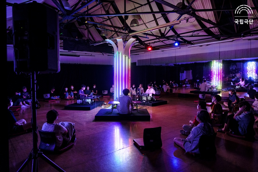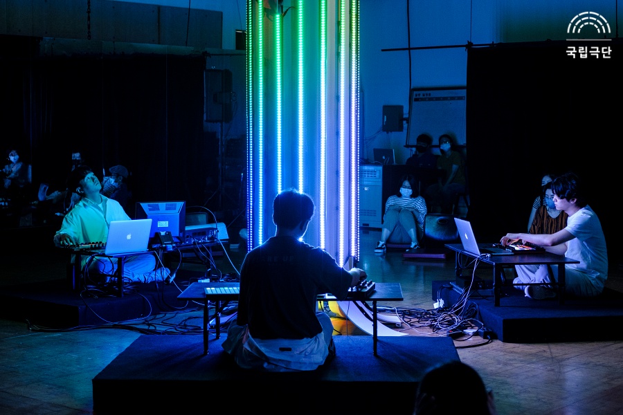 Headed by yeonhaengja Ko Dong-uk, the interdisciplinary artist collective EASThug garnered much attention in January 2020 for Gut, Trance and Exhilaration—a modern take on the musical elements of gut that visualized as data the brainwaves of performers in a state of trance. In Dangkeulmaeda(Spirit Awaits), they invite the audience to become part of their creative world through stage light and reinterpreted music of gut. By sharing their experience of finding solace in art, they aim to convey the messages of consolation inherent in gut in a new way.