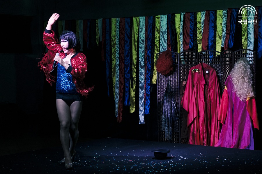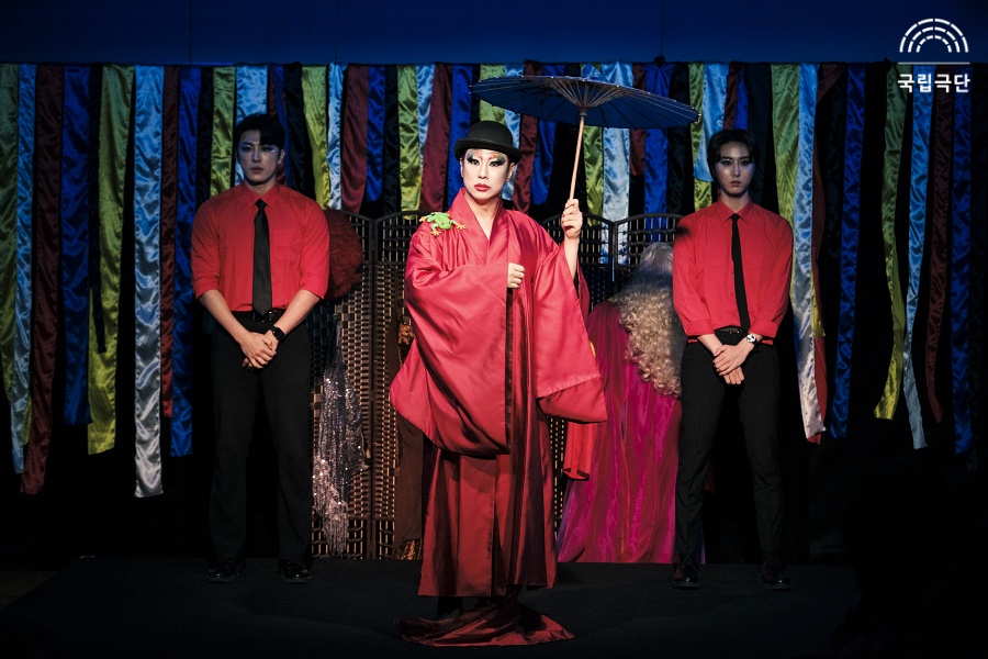 Actor Moon Min-hyoung, whose credits include not only plays and musicals but also television roles, takes the lead as yeonhaengja. Yeon Gut 演,Good(Unfold Good) presents a platform where gods and humans are brought together, and aims at achieving true communication with the audience through gut. In the form of a drag show (cross-dressing and switching the socially conditioned gender roles), the yeonhaengja on the stage becomes a third person that lends an ear to the audience—just as a shaman playing the role of yeonhaengja in gut would comfort the souls of the dead and the living through someone else.