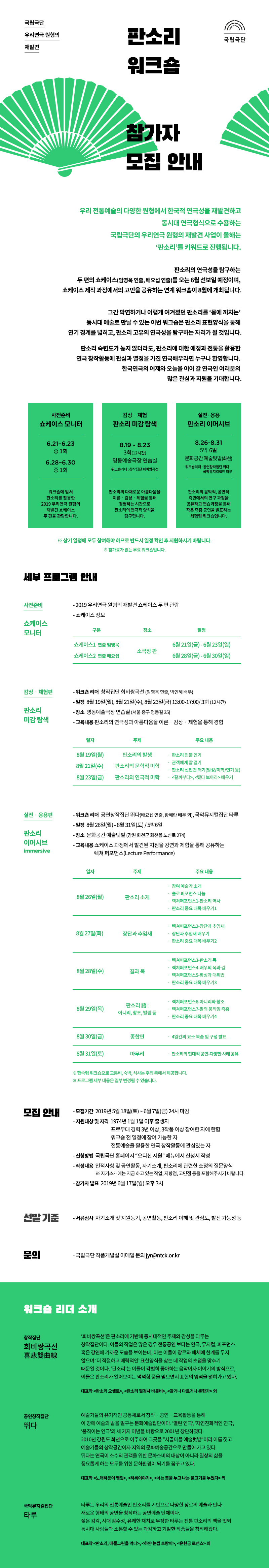 2019 우리연극 원형의 재발견-판소리 워크숍 참가자 모집