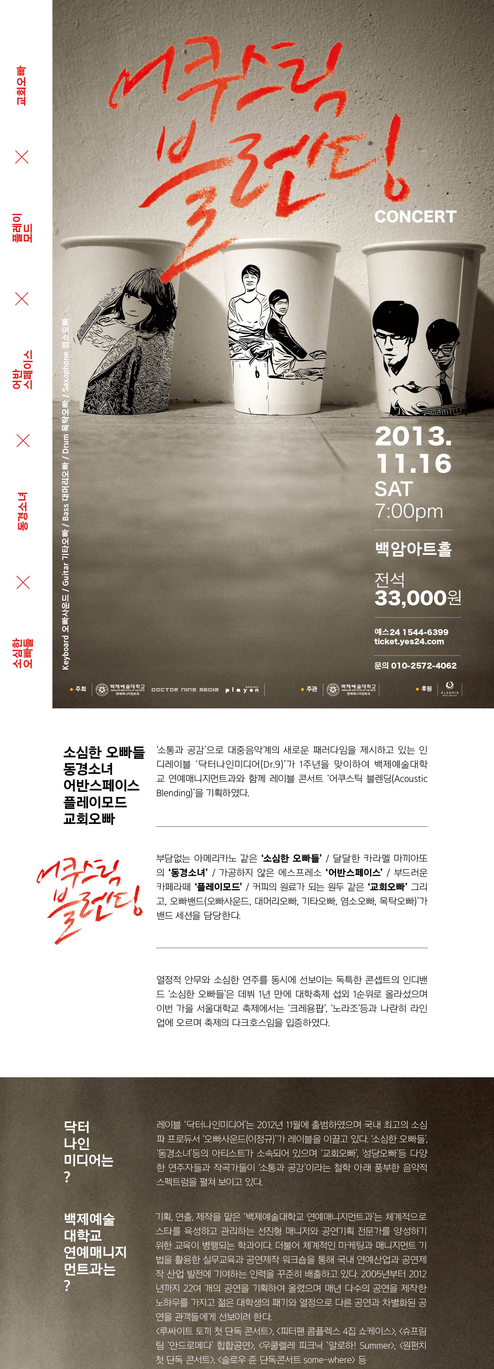 삼성동 백암아트홀에서 어쿠스틱 블렌딩 레이블 콘서트가 열립니다!