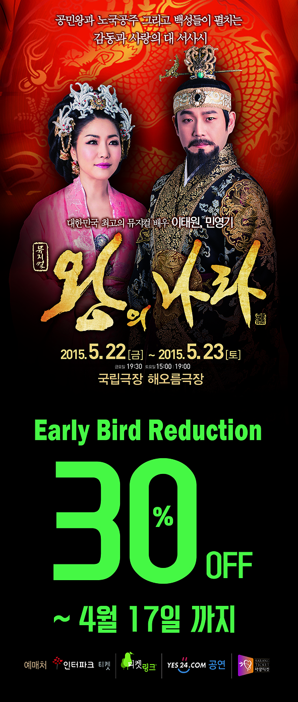 뮤지컬 왕의 나라 1차 조기예매가 4/17[금]에 마감됩니다!