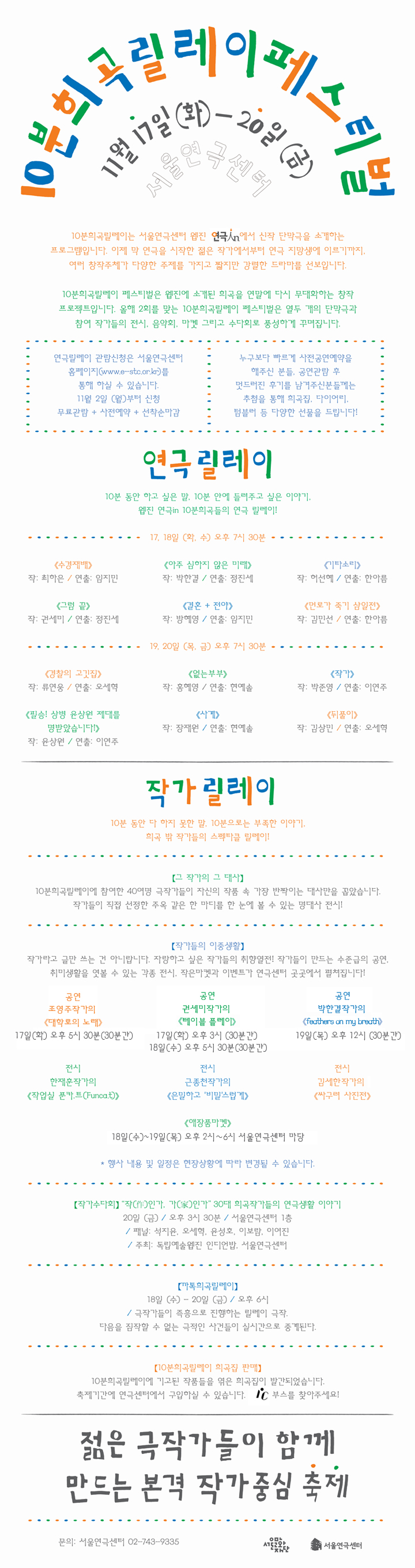 - [서울연극센터] 2015 10분희곡릴레이페스티벌 프로그램 안내