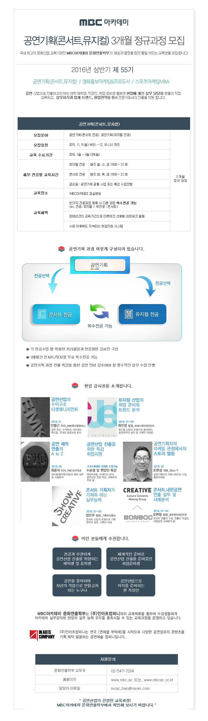 - [MBC아카데미] 55기 공연기획(뮤지컬/콘서트) 과정 모집(2016.1.4일 개강)!