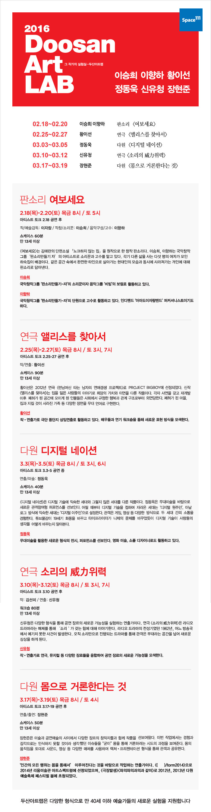 [두산아트센터] 젊은 예술가들의 실험실, 2016 두산아트랩(2.18~3.19)