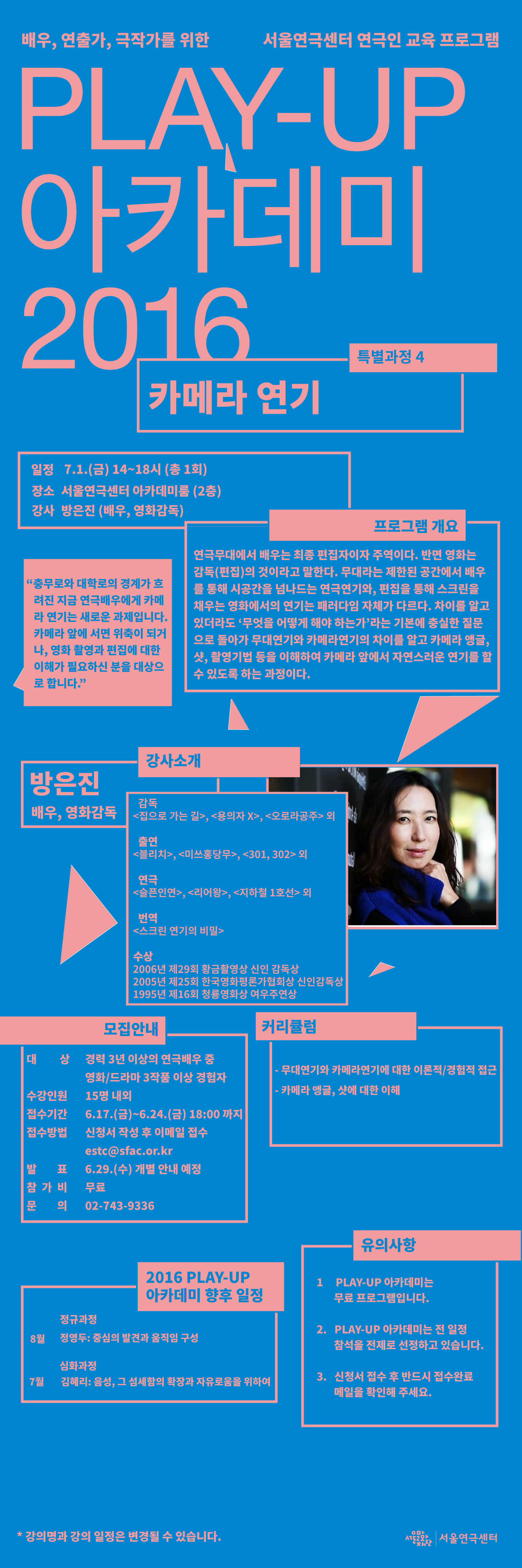 [서울연극센터] 2016 PLAY-UP 아카데미 특별과정 ④ 카메라 연기(방은진) 참가자 모집 안내
