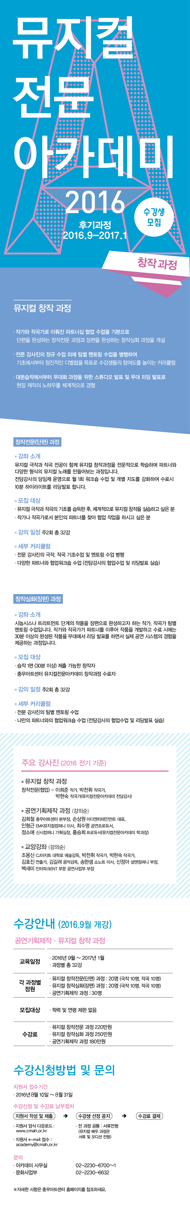 [충무아트센터 뮤지컬전문아카데미] 2016 후기 창작과정 수강생 모집 - 지원서 첨부