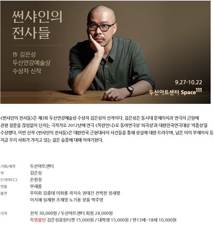 두산연강예술상 수상자 ‘김은성 신작 <썬샤인의 전사들> 티켓오픈