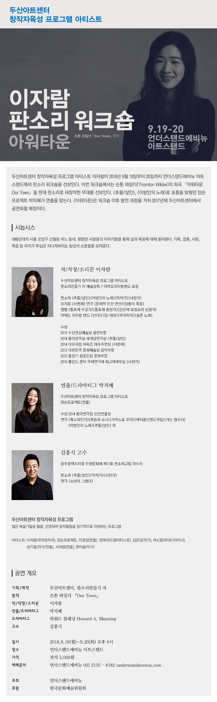 이자람 판소리 워크숍 <아워타운> 9.19~20 티켓오픈!