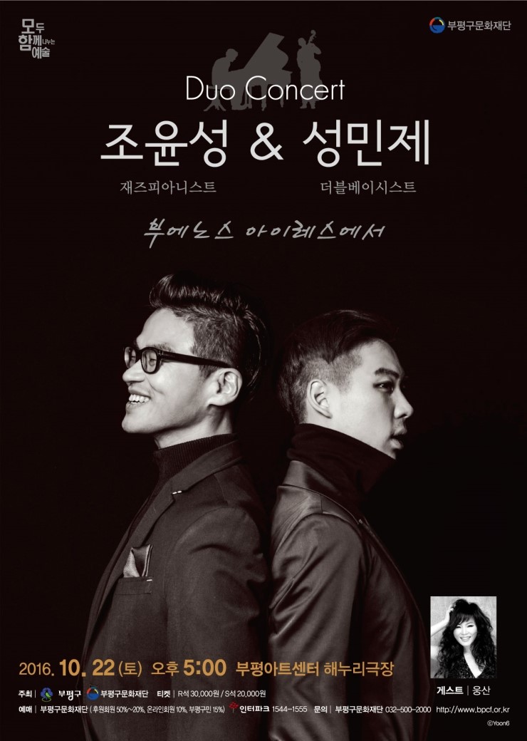 세계적 권위를 자랑하는 요한 마티아스 스페르거 더블베이스 국제 콩쿠르와 러시아 쿠세비츠키 더블베이스 국제 콩쿠르에서 우승 한 후 국내외 적으로 더블베이스 계의 핫이슈로 떠오른 성민제와 한국보다 해외에서 먼저 인정받은 천재 재즈 피아니스트이자 프로듀서 조윤성이 함께 무대에 오릅니다. 탱고의 고장 부에노스 아이레스를 테마로 익숙한 클래식 음악을 재즈버전으로 재해석하여 꾸민 그들만의 색다른 무대가 어떨지 한층 기대가 됩니다.
