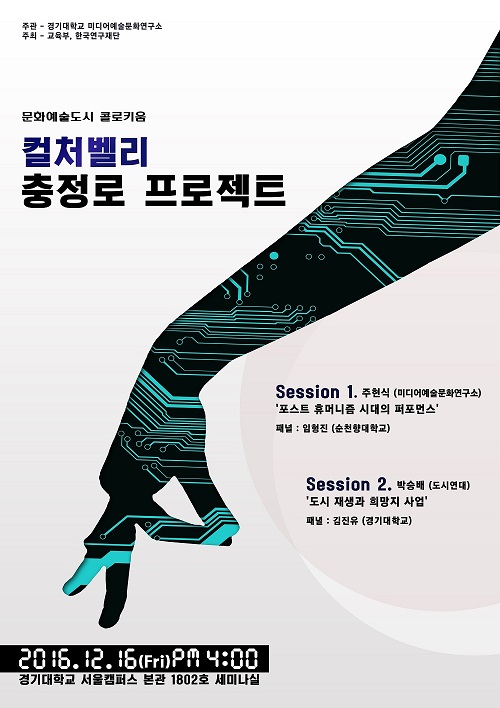 - 경기대학교 미디어예술문화연구소에서 진행하는 12월 콜로키움에 초대합니다.