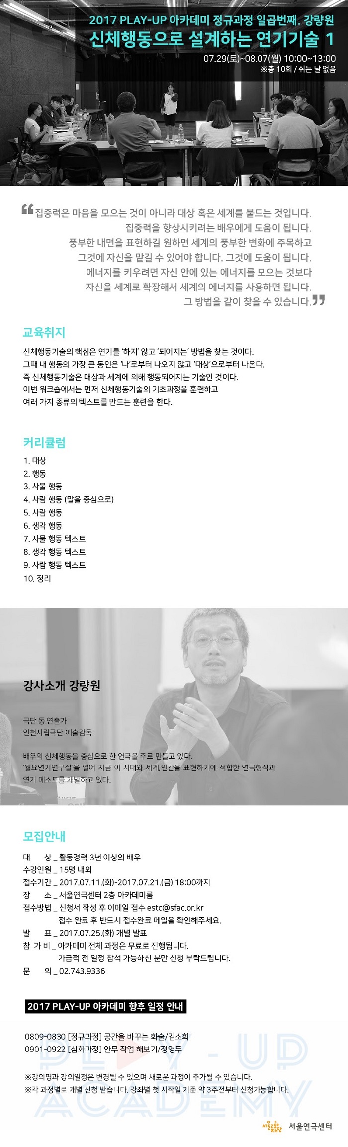 [PLAY-UP 아카데미] 정규과정7 신체행동으로 설계하는 연기기술1(강량원) 참가자 모집 안내