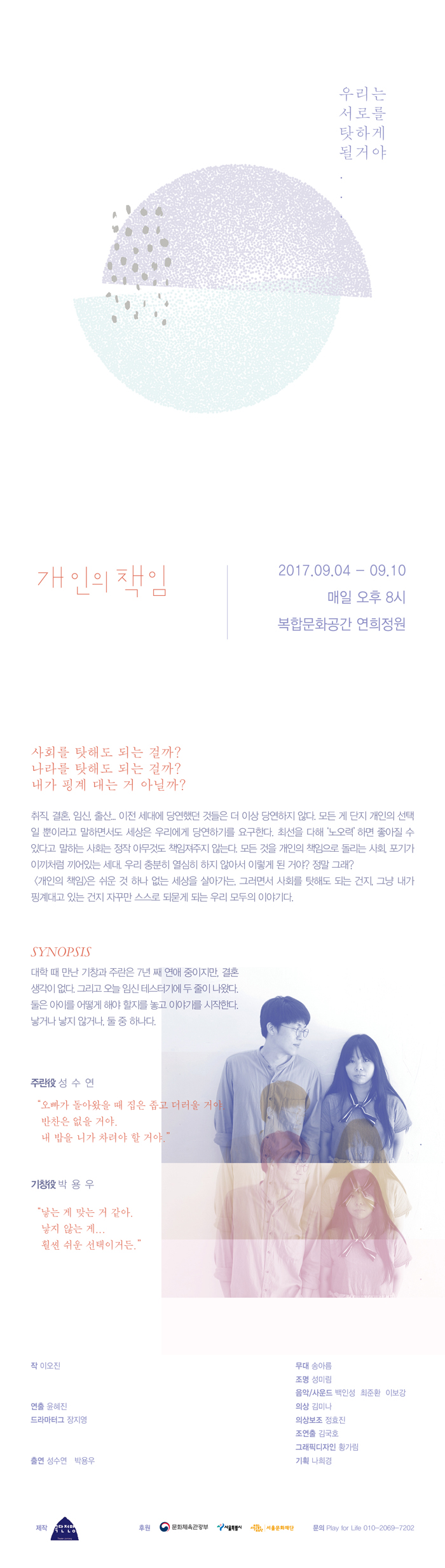 - 연극<개인의 책임> 포기가 이끼처럼 끼어있는 세대의 현실토크