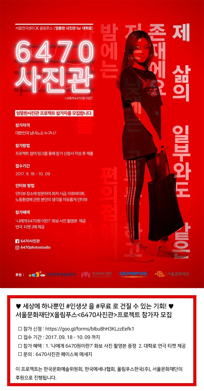 서울문화재단X올림푸스<6470사진관>프로젝트 참가자 모집
