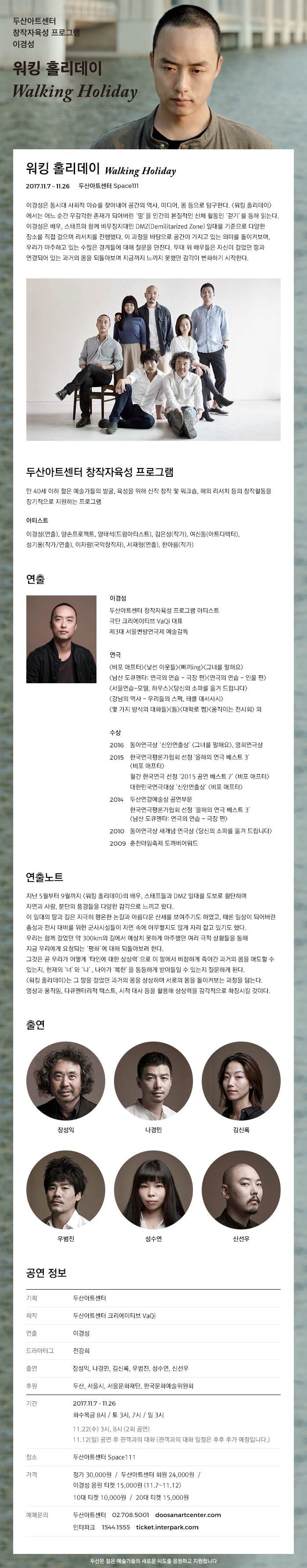 [두산아트센터] 창작자육성 프로그램 이경성 <워킹 홀리데이 Walking Holiday>