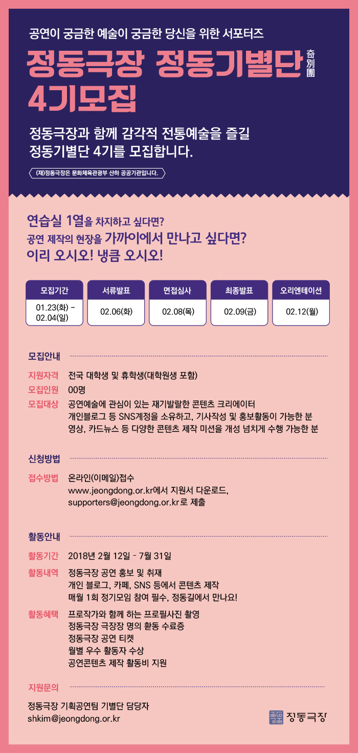 지원서 다운로드 정동극장 홈페이지 바로가기 www.jeongdong.or.kr