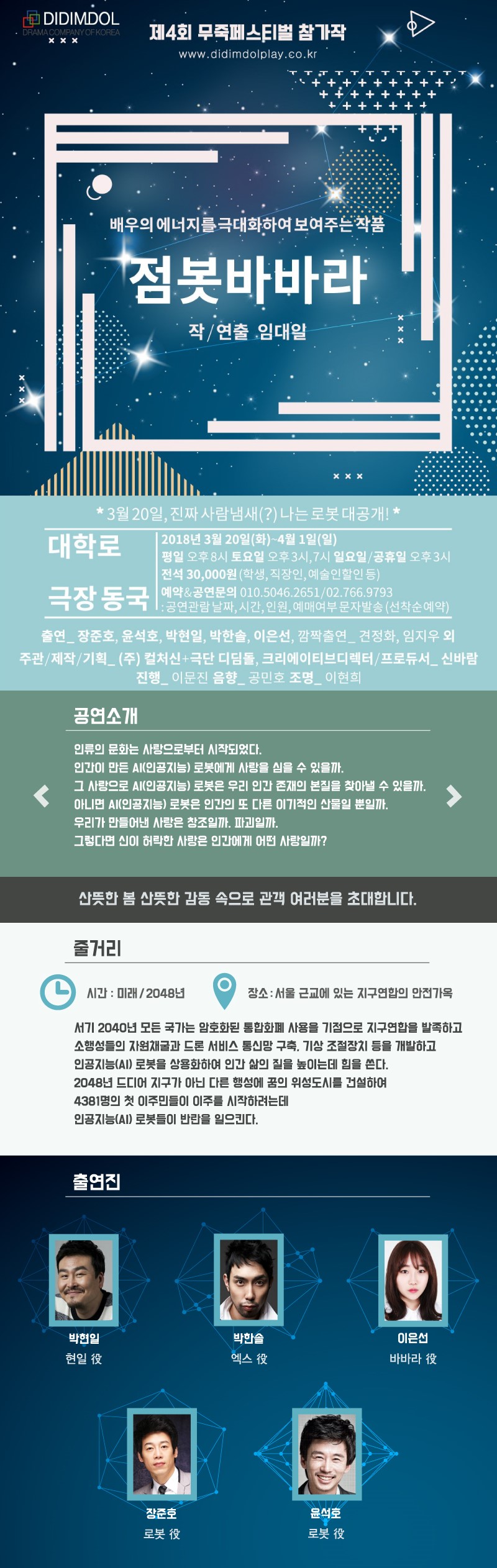 - [특별초대기간] 4차산업혁명을 주제로 한 연극 <점봇바바라>에 초대합니다.