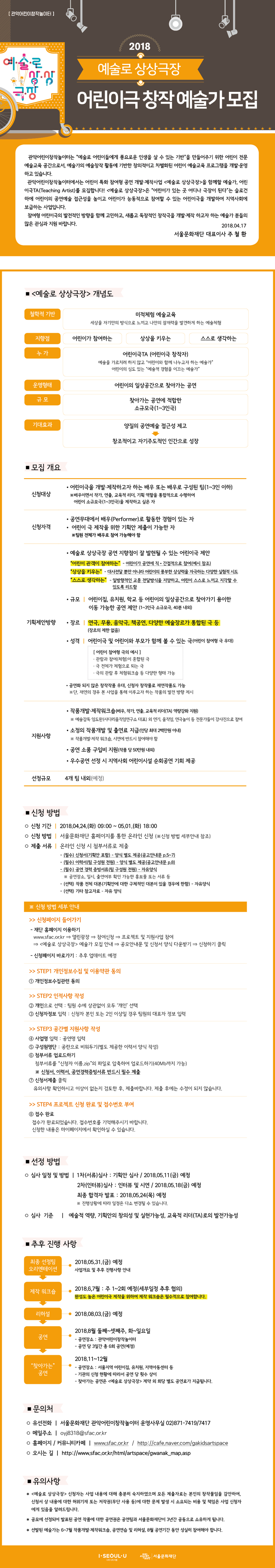 - [공모] 관악어린이창작놀이터 <2018 예술로 상상극장> 어린이극 창작 예술가 모집
