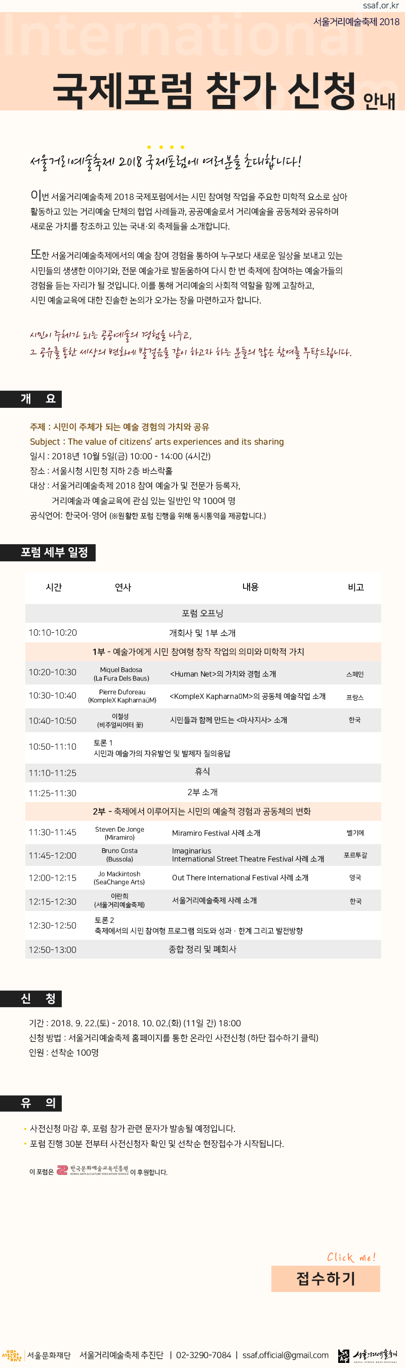 [모집] 서울거리예술축제 2018 국제포럼 참가 신청 안내(~10/2)