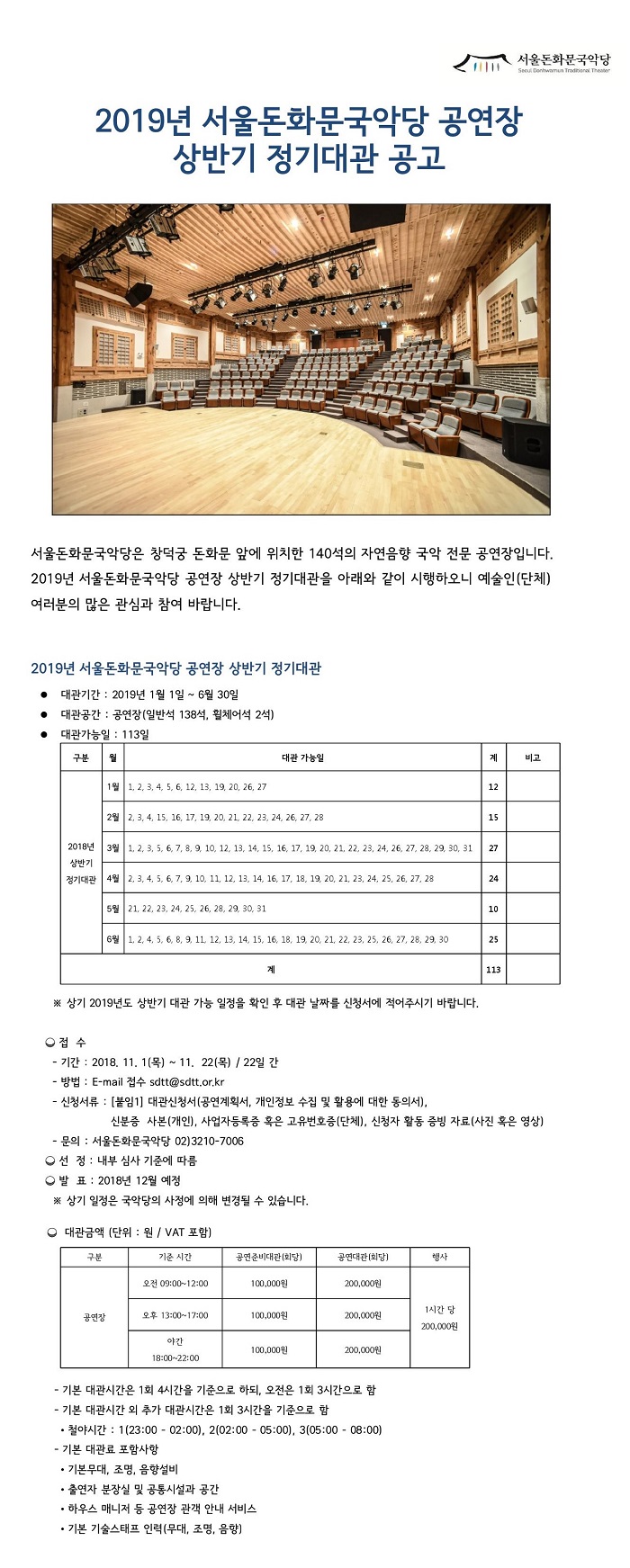 [서울돈화문국악당] 2019년 상반기 공연장 정기대관 공고