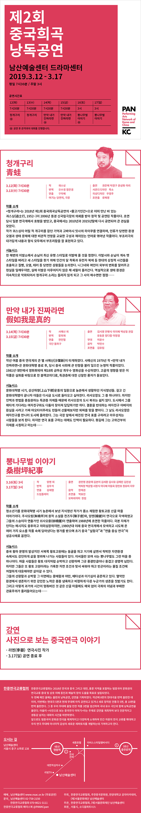 [한중연극교류협회] 제2회 중국희곡낭독공연 3.12-3.17 남산예술센터 드라마센터