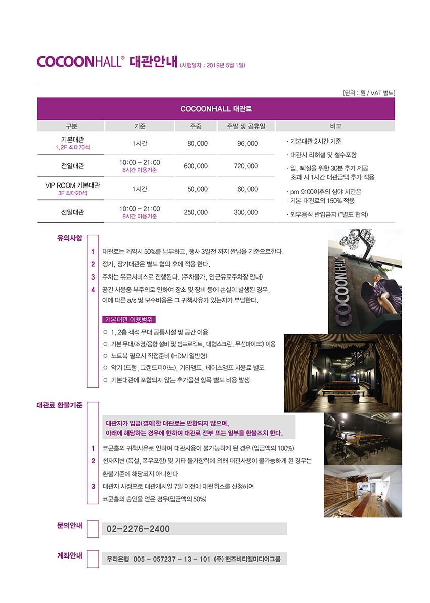 예매문의(내선1번) 평일 13시-18시, 주말/공휴일 휴무