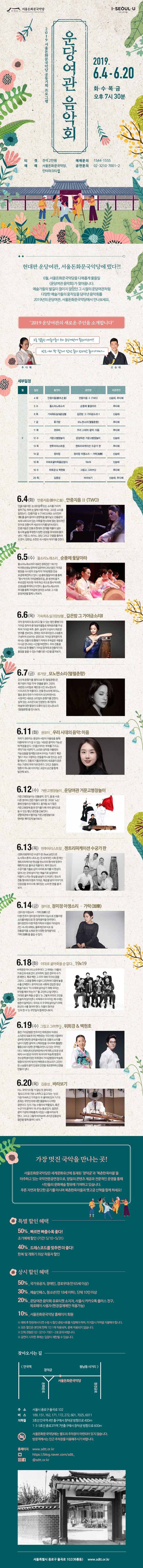 [서울돈화문국악당] 운당여관 음악회 (6. 4. ~ 6. 20.)