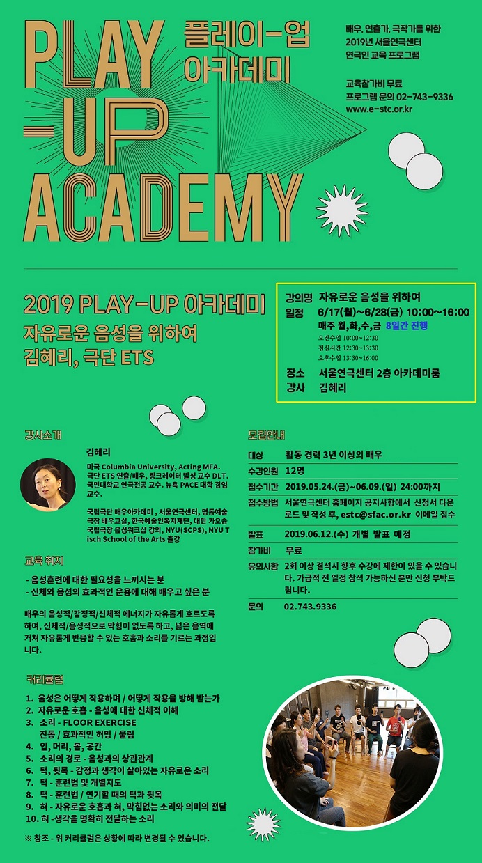 2019년 플레이업 아카데미 김혜리 선생님의 <자유로운 음성을 위하여> 의 참가자를 모집하고 있습니다!