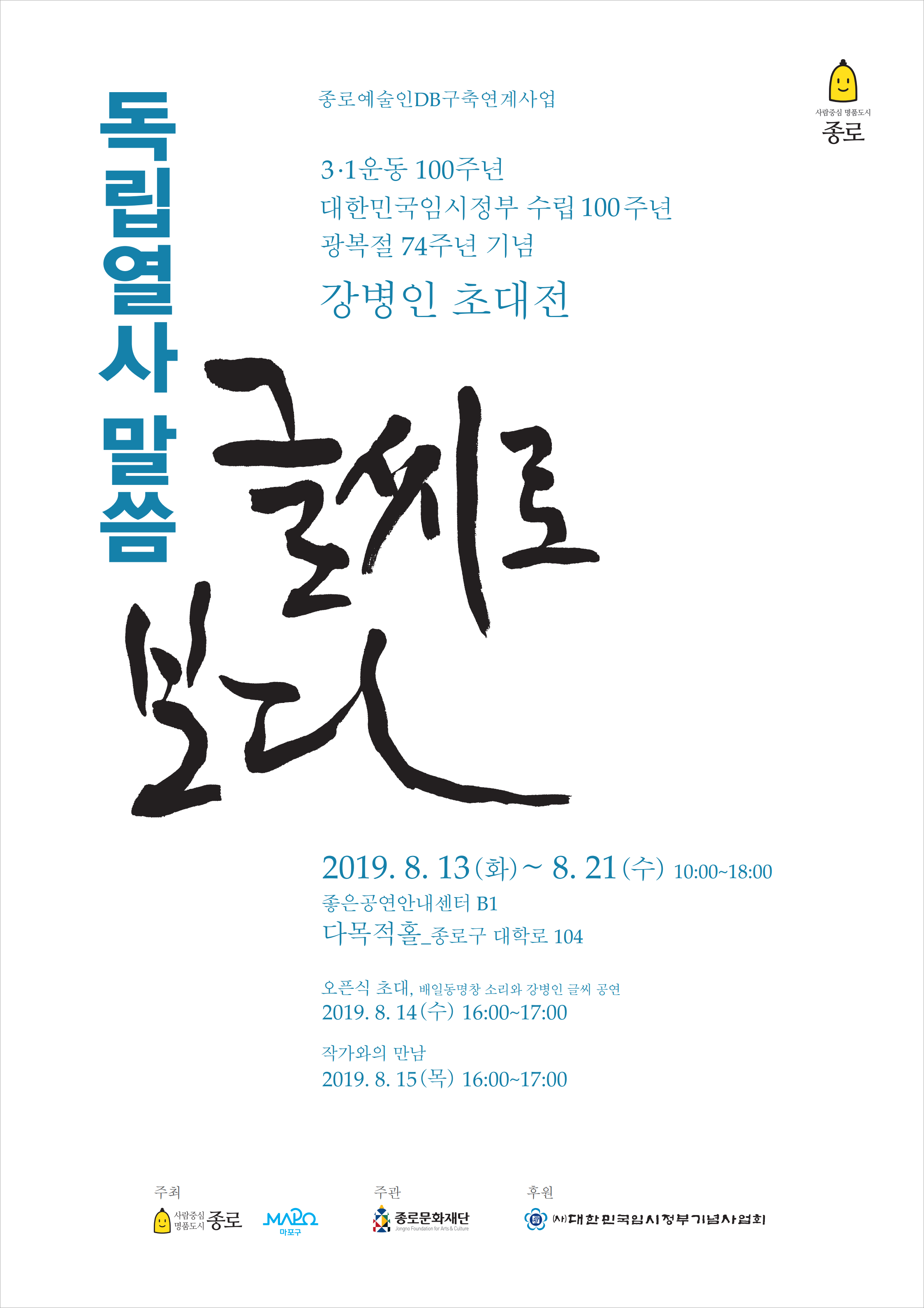- [종로문화재단]강병인 초대전 <독립열사말씀, 글씨로 보다>