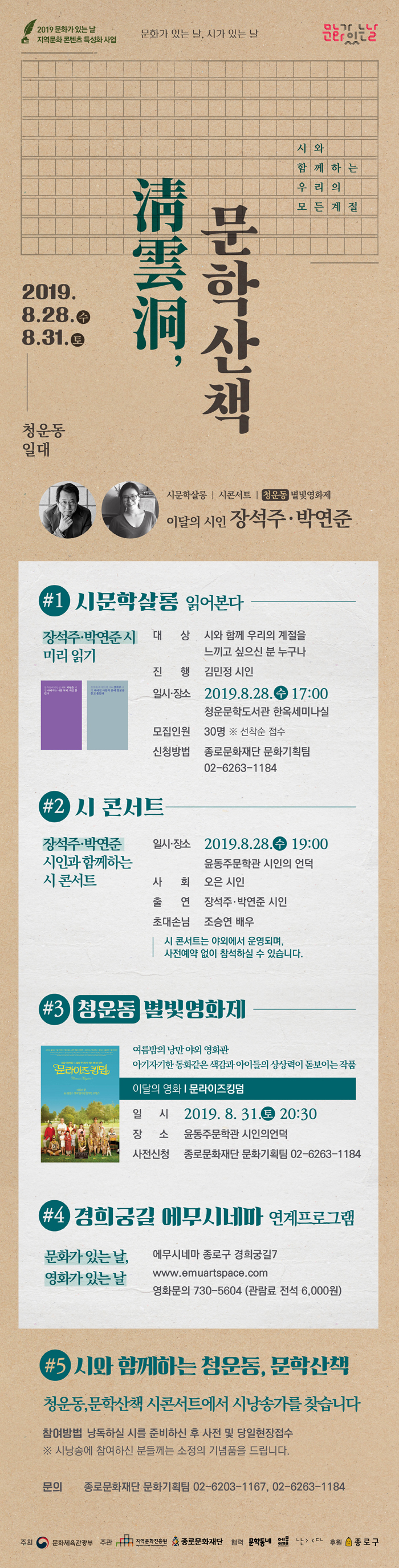 장석주, 박연준 시인과 함께하는 8월 <청운동,문학산책>