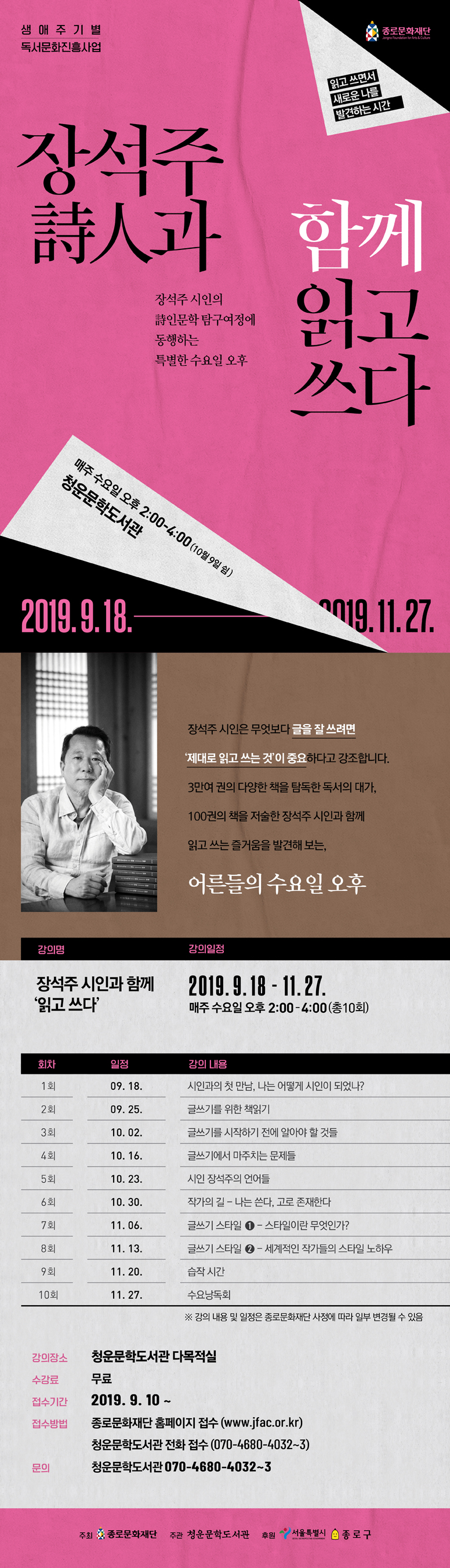 - [청운문학도서관] 장석주 시인과 함께 읽고 쓰다