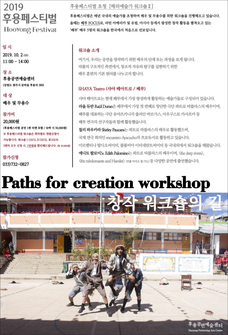 [2019후용페스티벌] 해외예술가(페루) 초청 워크숍 참가신청 안내