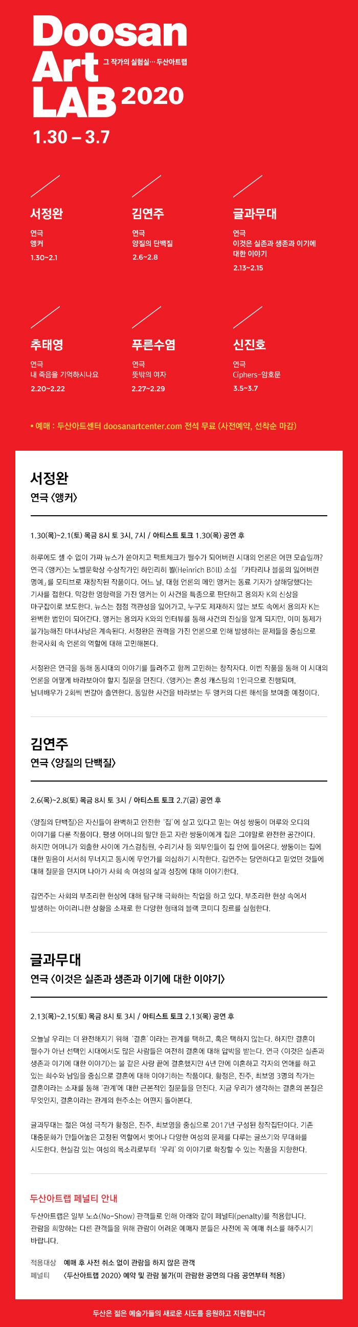 - [두산아트센터] 그 작가의 실험실…두산아트랩 2020 #무료공연 1.30~3.7