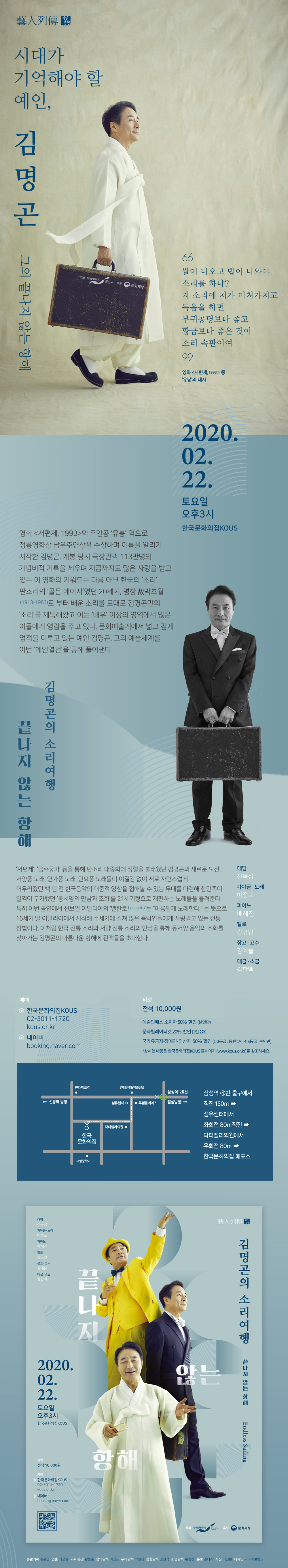 - [한국문화재재단 한국문화의집] 예인열전(藝人列傳)-김명곤의 소리여행(Endless sailing)