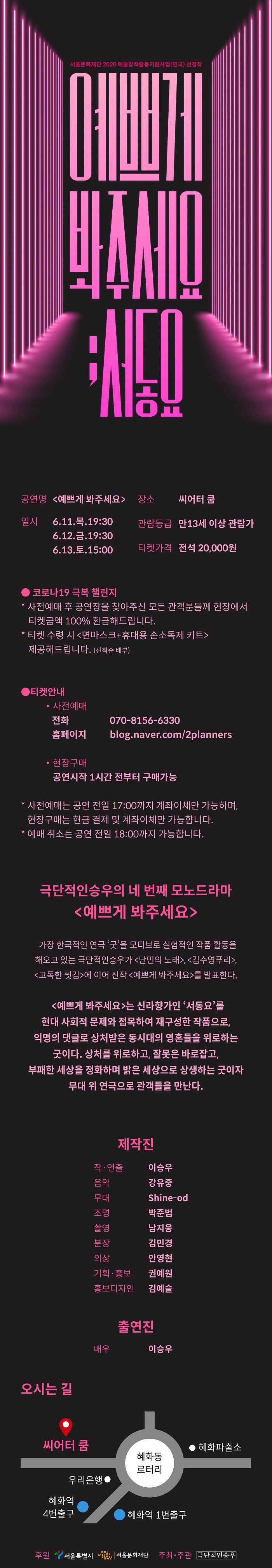 ※ 서울문화재단 2020 예술창작활동지원사업 선정작 연극<예쁘게 봐주세요>