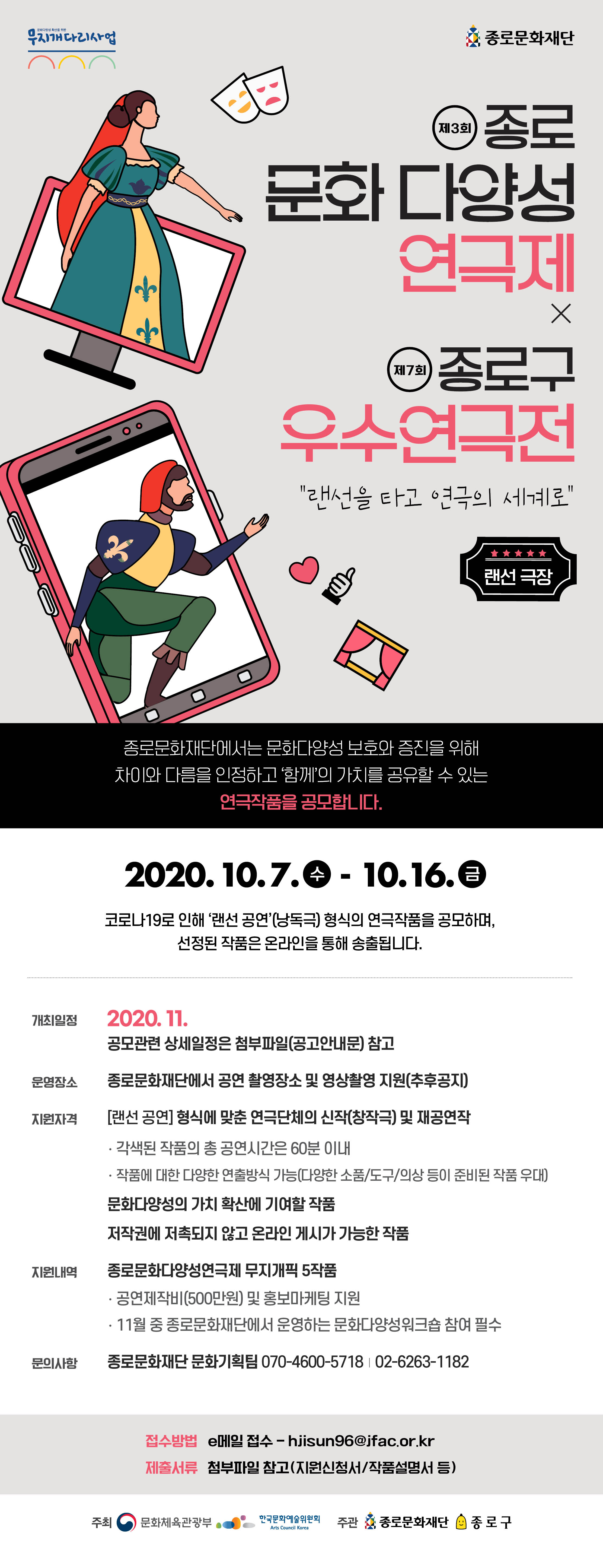 - [모집] 2020년 제3회 종로문화다양성연극제X우수연극전 참가단체 모집 안내