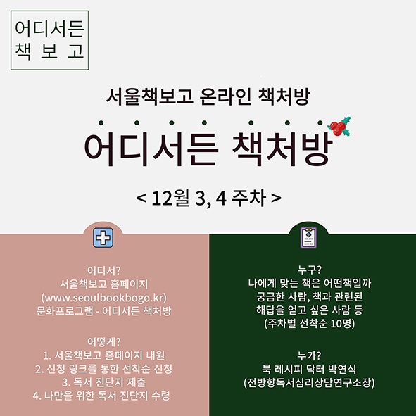 - [서울책보고] 온라인 책처방 <어디서든 책처방> 12월 3, 4주차 참여자 모집