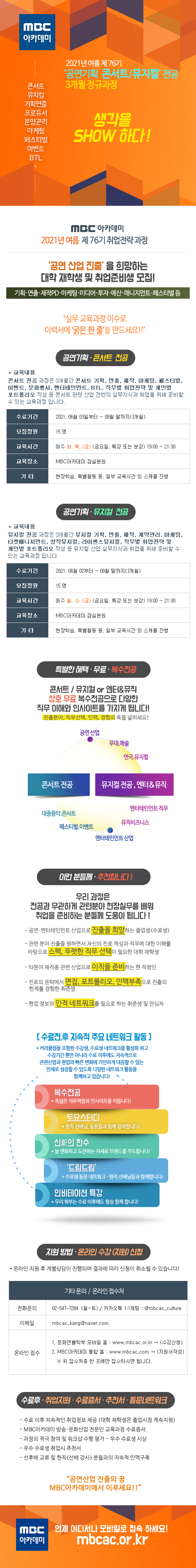 - [MBC아카데미] ■76기 공연기획(콘서트/뮤지컬)과정 모집! 6월 개강!