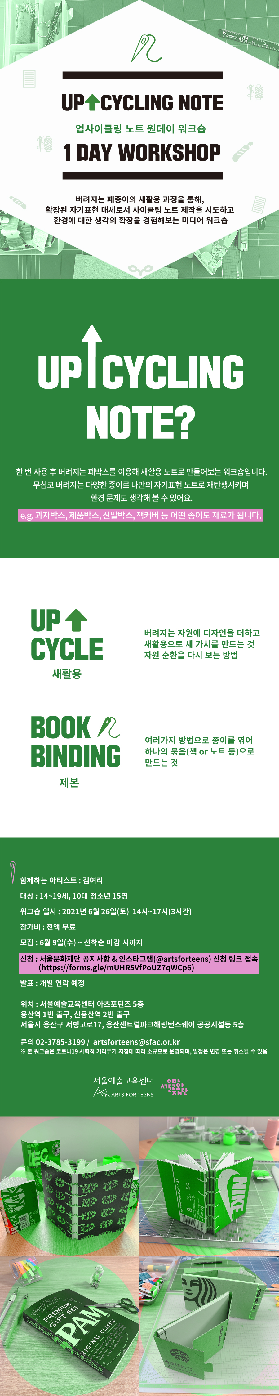 - [서울예술교육센터] 아츠포틴즈 미디어 기반 <업사이클링 노트> 원데이 워크숍 참여자 모집