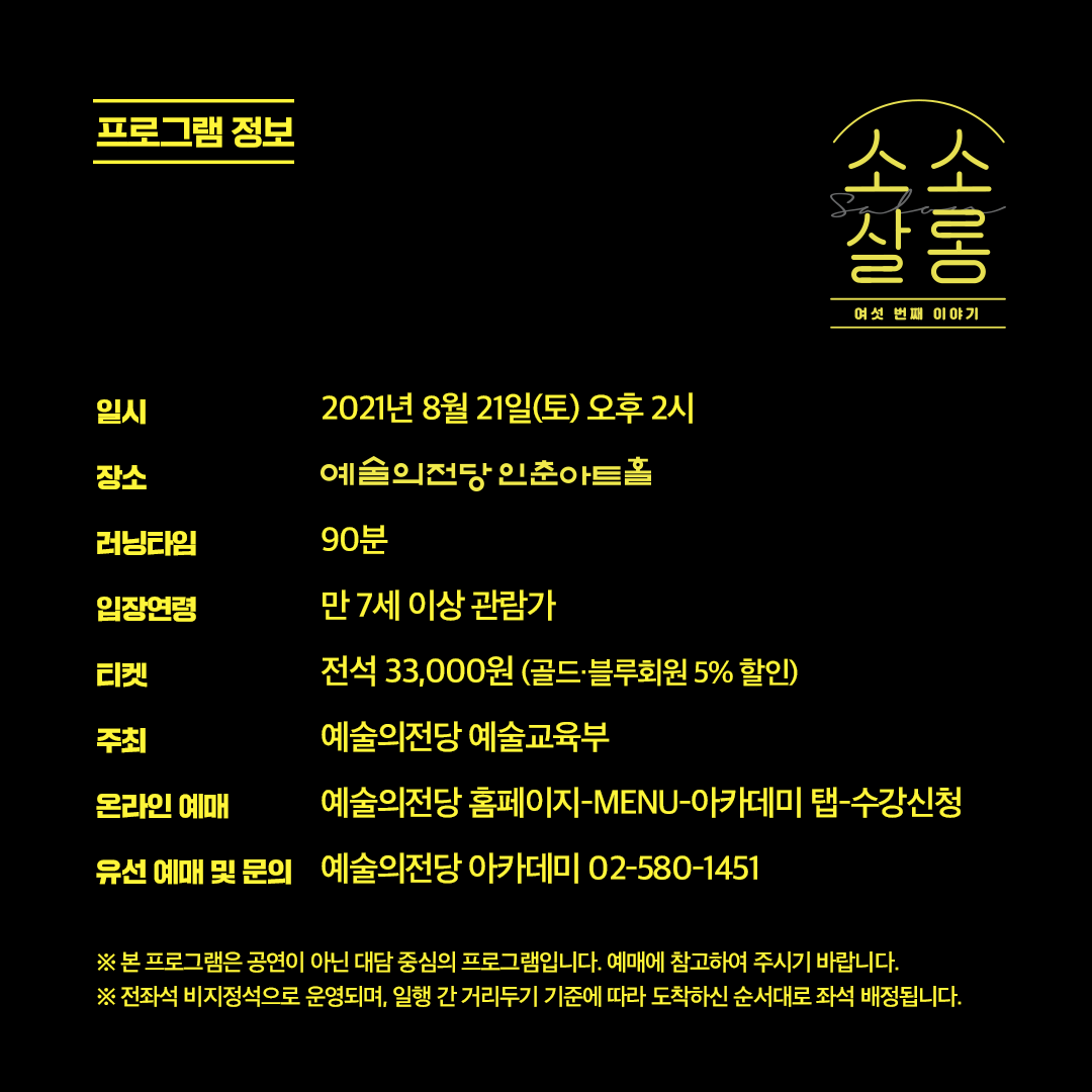 <차진엽의 소소살롱> 바로가기▶ https://www.sac.or.kr/site/main/academy/academy_app_view?searchCourseCd=C102104202108001