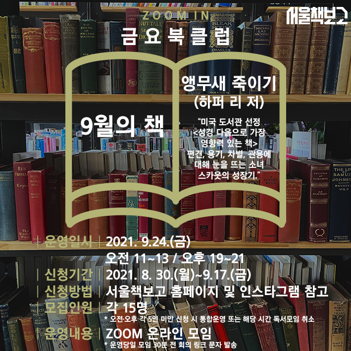 - [서울책보고] 서울책보고 zoom in 금요북클럽 참가자 모집(9월)