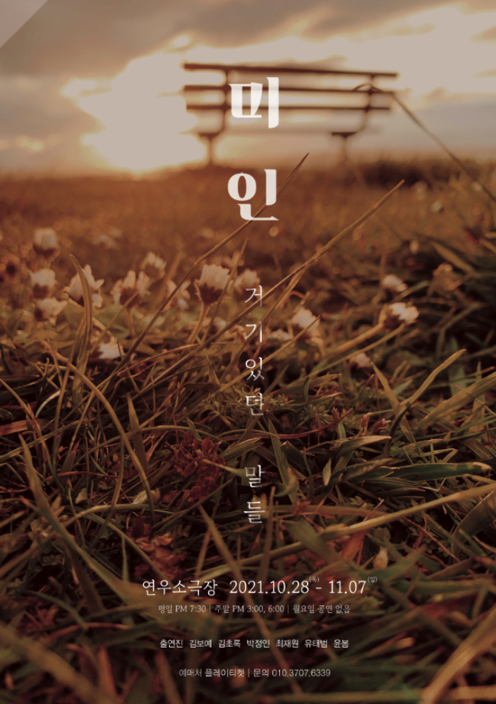 연우 소극장에서 10월28일부터 11월7일까지 공연하는 연극 <미인-거기 있던 말들>을 소개 드리고자 글을 쓰게 되었습니다!