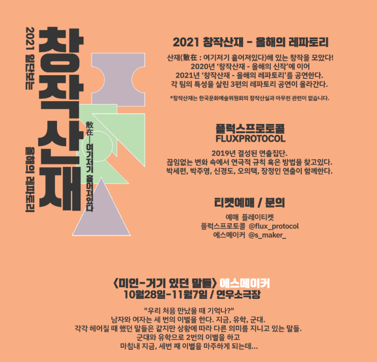 안녕하세요! 대학로 연극 <미인-거기 있던 말들>의 극단 에스메이커입니다