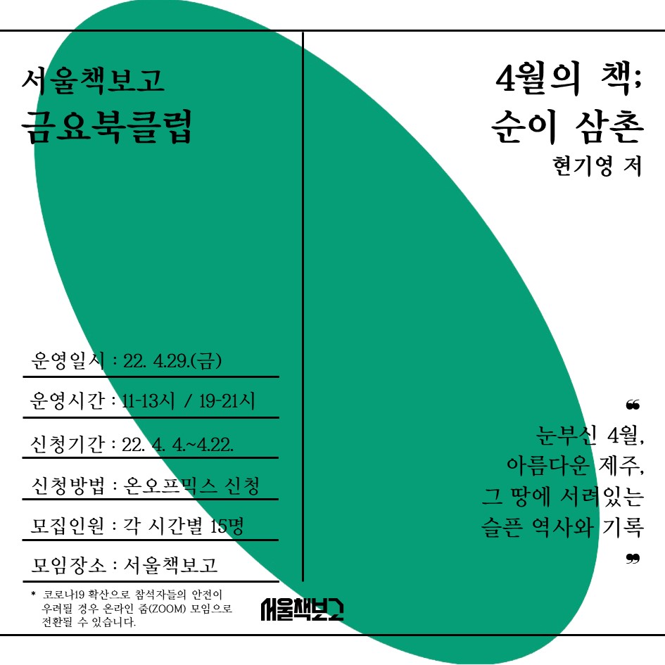 - [서울책보고] 2022 서울책보고 금요북클럽 참여자 모집(4월)