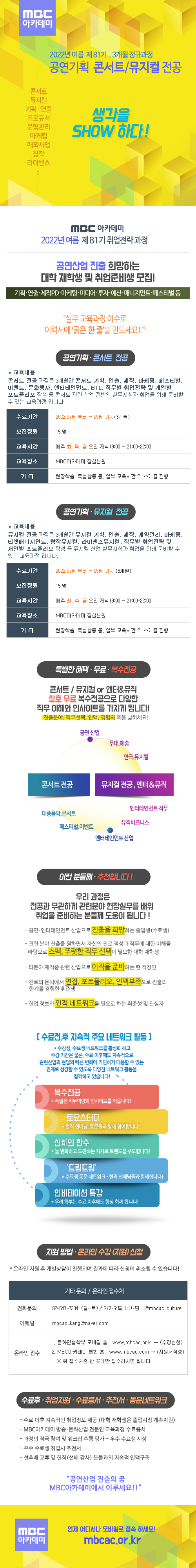 - [MBC아카데미] 제 81기 공연기획(콘서트/뮤지컬)과정 모집! 7월 개강!