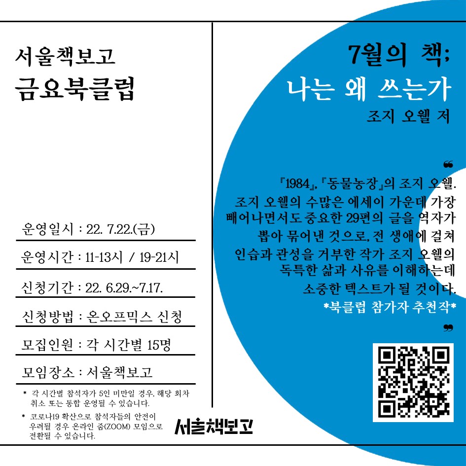 - [서울책보고] 2022 금요북클럽 7월 참가자 모집
